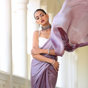 Colour: An elegant Mauve Purple with a Silver glaze all over to give it a flowy silken look when draped over the body.